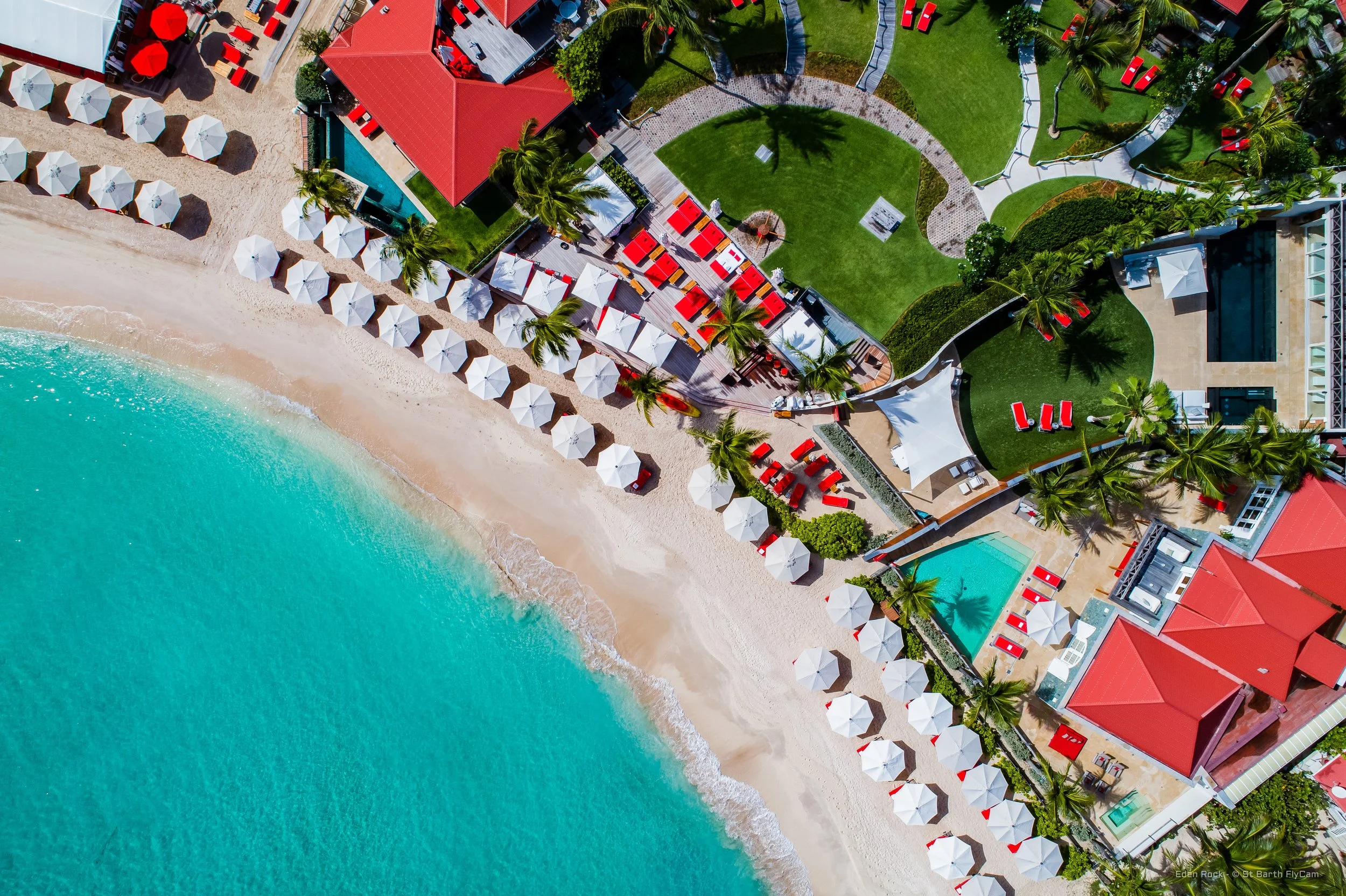 Cheval Blanc, owned by LVMH, oozes sophistication, and the hotel brand’s St. Barth’s outpost is no different. Located on Flamands Beach, this see-and-be-seen hotel is built into the cliffside with tiered rooms and villas overlooking the ocean. There are sumptuous rooms, designer pop-ups, a chic spa, and a fabulous beachside restaurant.