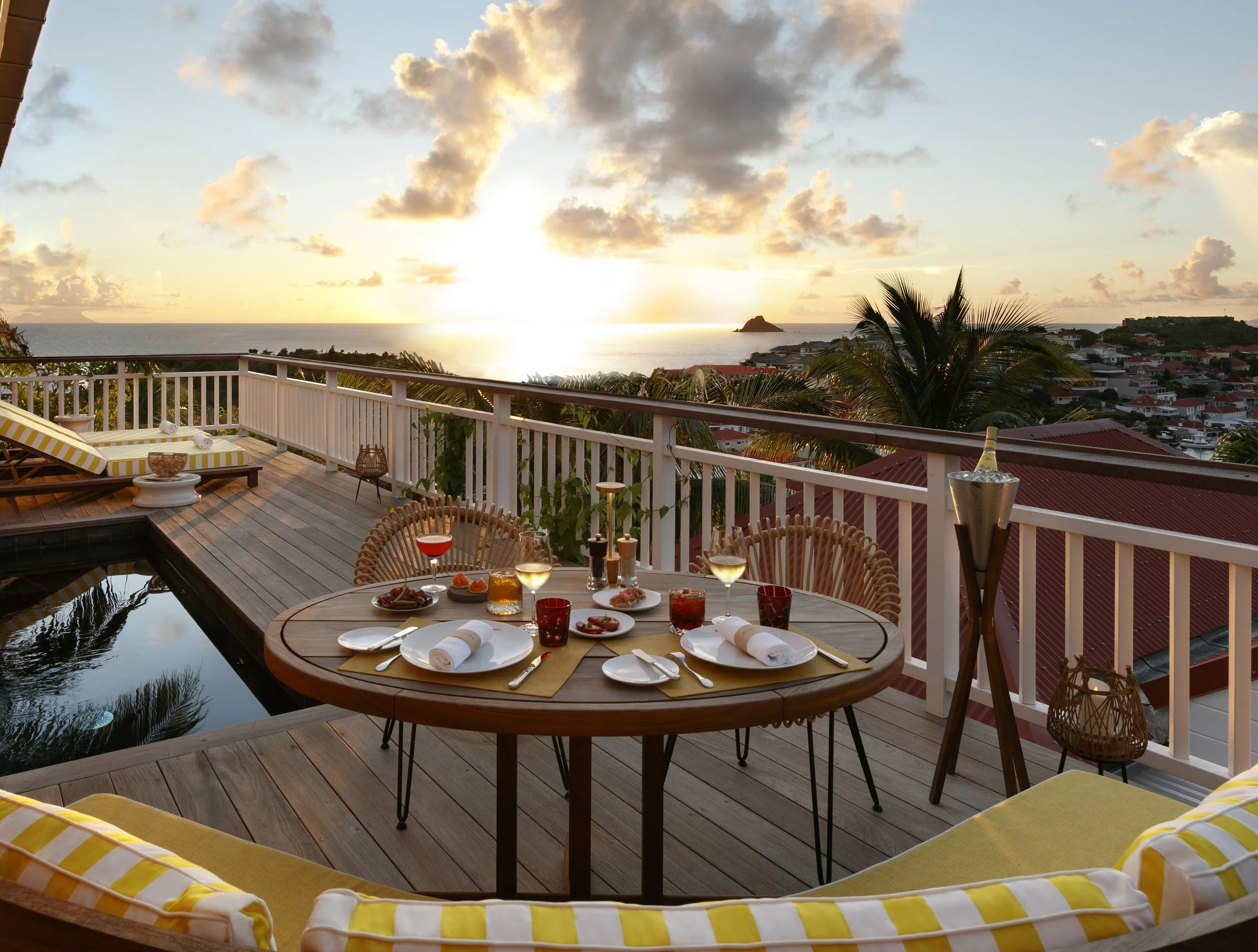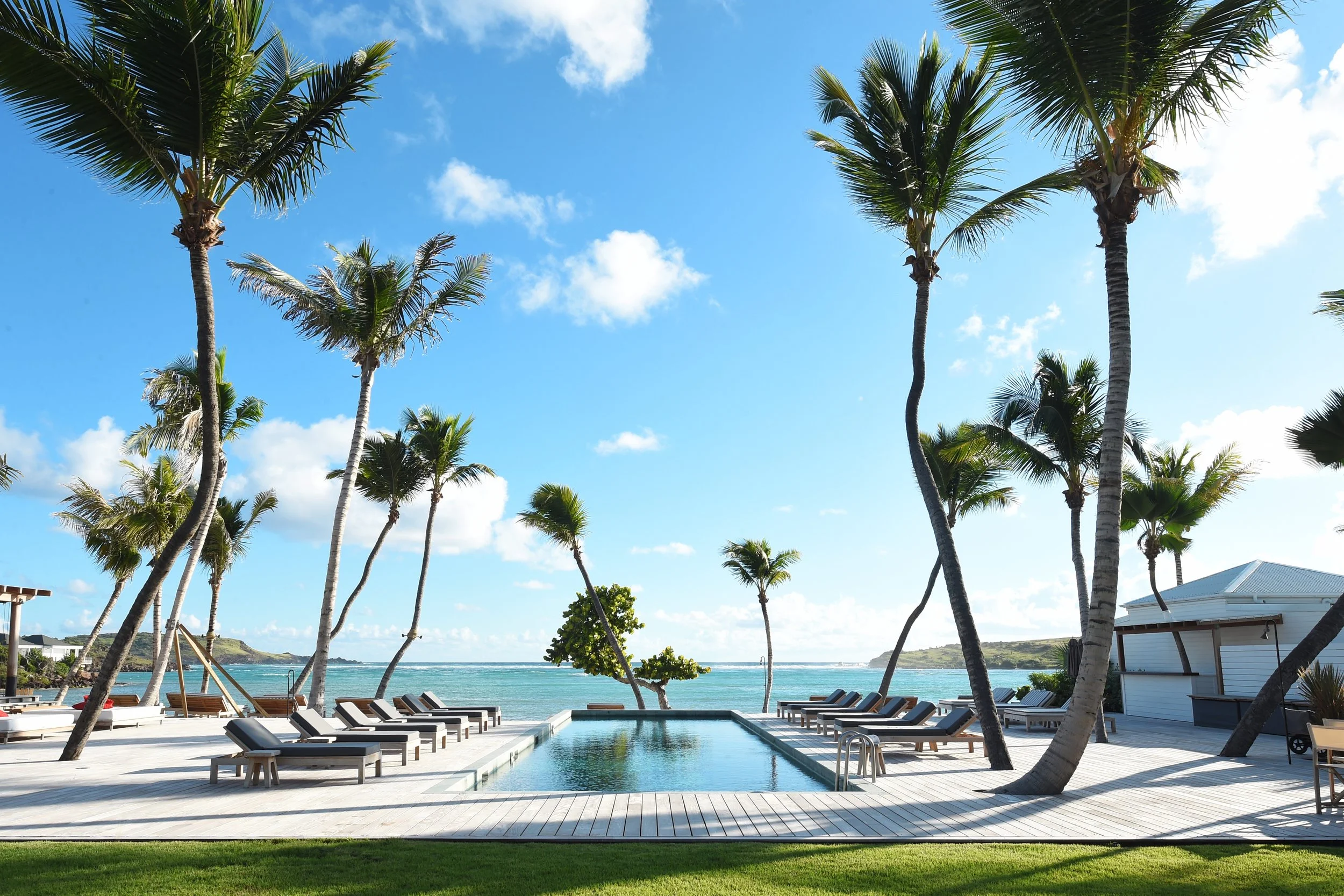 Perched above Gustavia, the island’s bustling capital, Hôtel Barrière Le Carl Gustaf has some of the island’s best views from its well-designed guest rooms (many of which have private pools) and its signature restaurant, Fouquet’s. The hotel is conveniently located on Shell Beach, which has some of the best sunset views on the island.